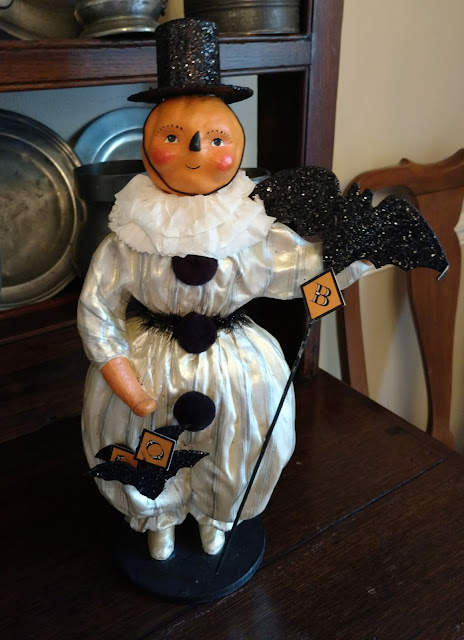 Our original German Kitchen Witch!! And the orange "pumpkin rocks" were a project Isabel and I worked on years ago. You pick out rocks that can "stand up". Paint them orange, then paint on faces. Somewhere I have white "ghost rocks", but I couldn't find them anywhere! Oh well.....sounds like I need to make more!!