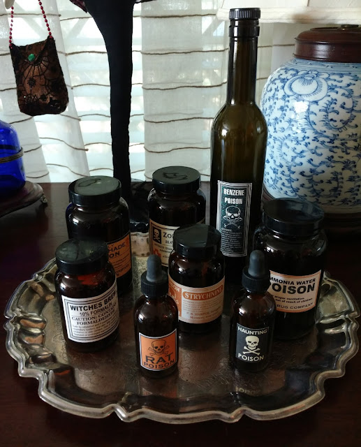 Aren't these bottles fun? I bought the labels years ago, then put them on bottles I had collected. Now you know why I need a studio, to put all this "stuff" in that I collect over the years!